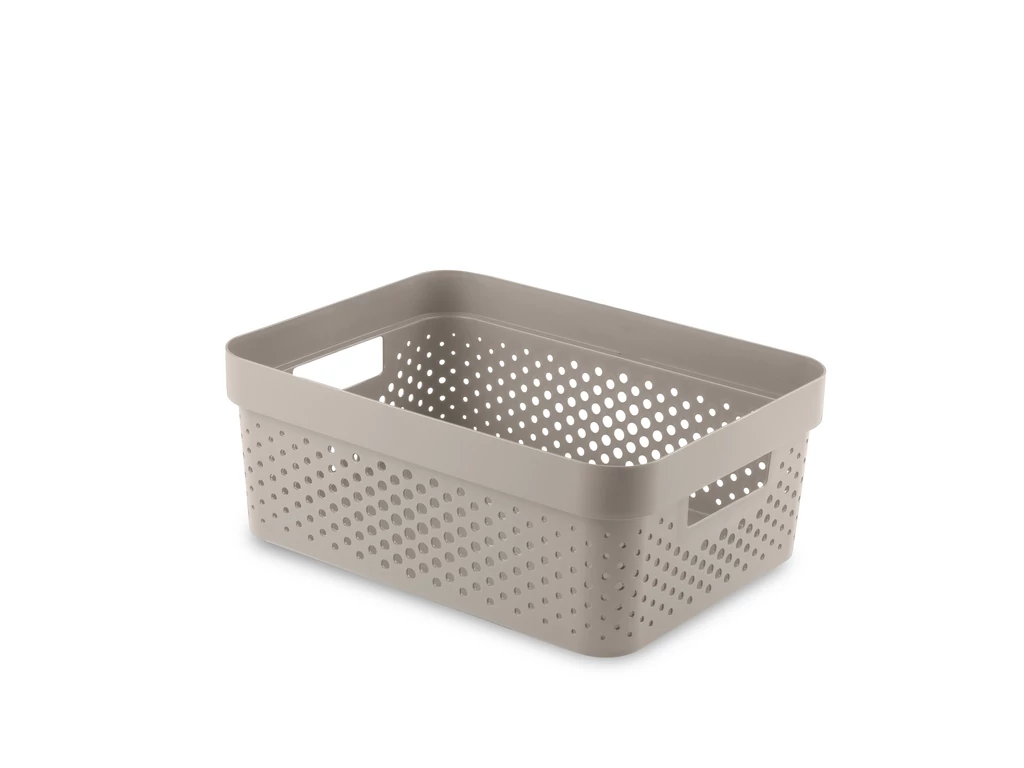 Az Infinity tárolódoboz egy moduláris és multifunkcionális tárolási megoldás az otthonodba. Kényelmes fogantyúinak köszönhetően könnyedén szállítható, így az ékszerek, konyhai és fürdőszobai kiegészítők, vagy a különböző papírok bármely szobában helyet kaphatnak. A legjobb minőségű műanyagból készül, így ellenálló és könnyen tisztítható. Az egyedi, lyukacsos mintázat skandináv stílust kölcsönöz neki, amely tökéletes kiegészítője bármely szobának! További előnye a terméknek, hogy 100%-ban újrahasznosított anyagból készül, így rendkívül környezettudatos.