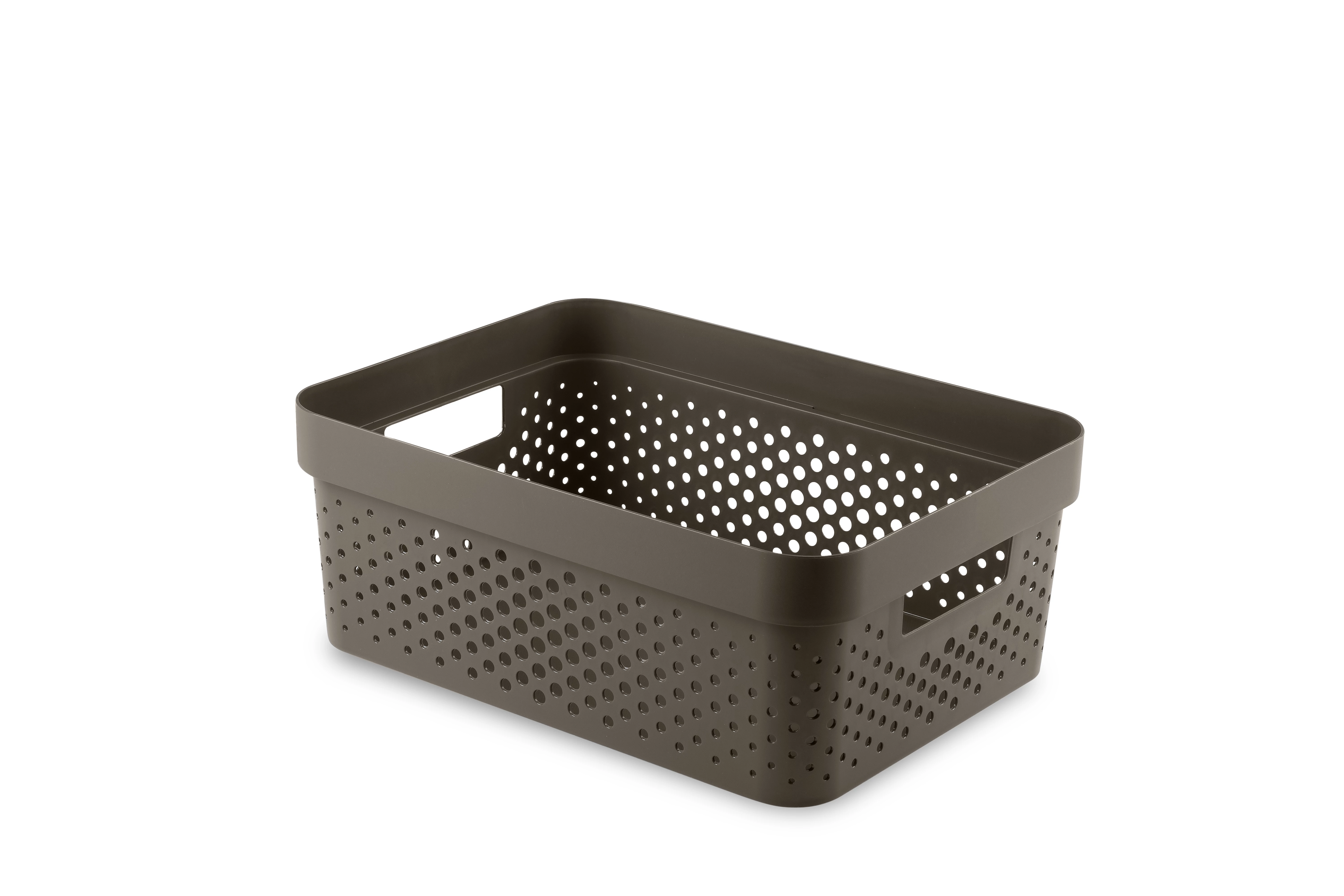 Az Infinity tárolódoboz egy moduláris és multifunkcionális tárolási megoldás az otthonodba. Kényelmes fogantyúinak köszönhetően könnyedén szállítható, így az ékszerek, konyhai és fürdőszobai kiegészítők, vagy a különböző papírok bármely szobában helyet kaphatnak. A legjobb minőségű műanyagból készül, így ellenálló és könnyen tisztítható. Az egyedi, lyukacsos mintázat skandináv stílust kölcsönöz neki, amely tökéletes kiegészítője bármely szobának! További előnye a terméknek, hogy 100%-ban újrahasznosított anyagból készül, így rendkívül környezettudatos.