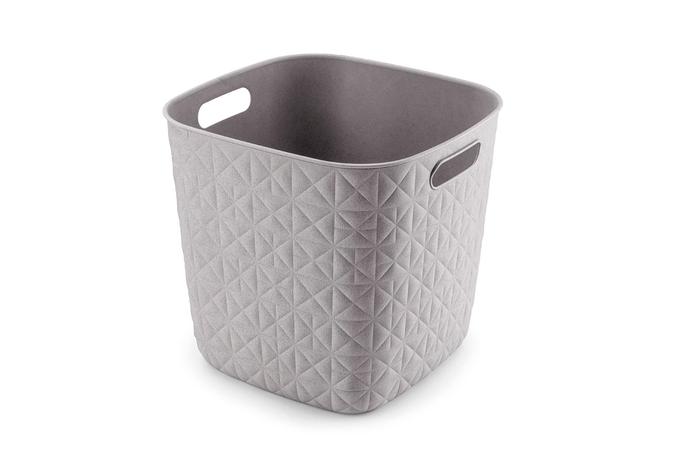 Az Cube tárolókosár (15 L) egy különleges szövési és varrási technikát ötvöz, amely olyan mintázatot hoz létre, amely úgy néz ki, mintha párnázott lenne, így esztétikus és barátságos hangulatot kölcsönöz bármelyik szobának. Ez a kosár ráadásul fenntartható is, mivel 100%-ban újrahasznosított anyagokból készült.