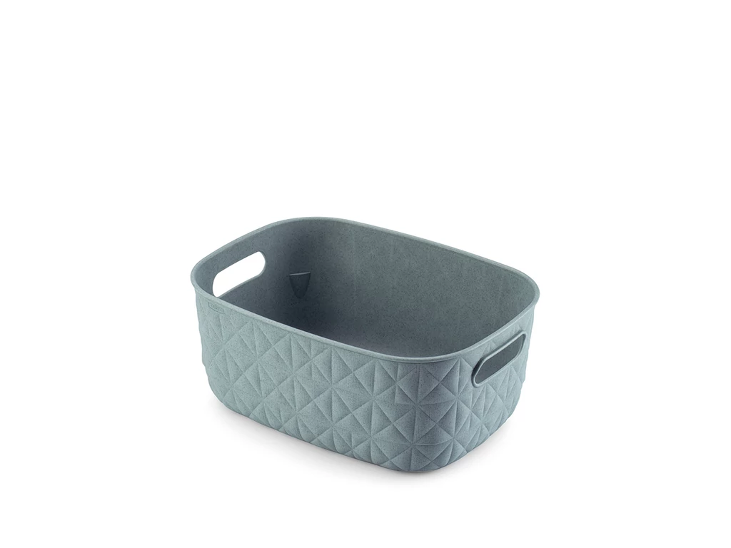 Az 4 literes tárolókosár (S) egy különleges szövési és varrási technikát ötvöz, amely olyan mintázatot hoz létre, amely úgy néz ki, mintha párnázott lenne, így esztétikus és barátságos hangulatot kölcsönöz bármelyik szobának. Ez a kosár ráadásul fenntartható is, mivel 100%-ban újrahasznosított anyagokból készült.