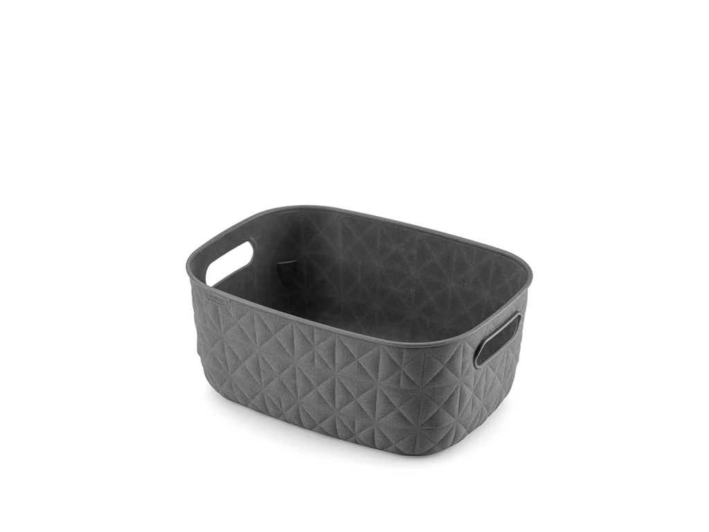 Az 4 literes tárolókosár (S) egy különleges szövési és varrási technikát ötvöz, amely olyan mintázatot hoz létre, amely úgy néz ki, mintha párnázott lenne, így esztétikus és barátságos hangulatot kölcsönöz bármelyik szobának. Ez a kosár ráadásul fenntartható is, mivel 100%-ban újrahasznosított anyagokból készült.