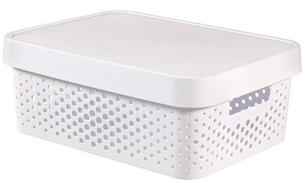 Masszív és plusz hogy van teteje. Szekrény alatti tárolásra vettem. A lyukak miatt szellőzik de cserébe porosodik is