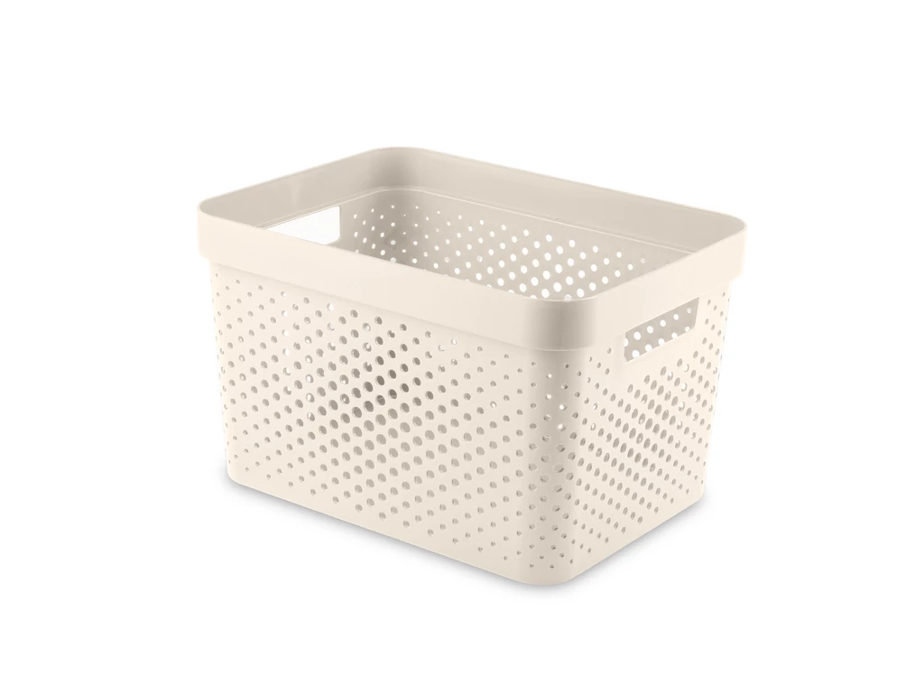 Az Infinity tárolódoboz egy moduláris és multifunkcionális tárolási megoldás az otthonodba. Kényelmes fogantyúinak köszönhetően könnyedén szállítható, így az ékszerek, konyhai és fürdőszobai kiegészítők, vagy a különböző papírok bármely szobában helyet kaphatnak. A legjobb minőségű műanyagból készül, így ellenálló és könnyen tisztítható. Az egyedi, lyukacsos mintázat skandináv stílust kölcsönöz neki, amely tökéletes kiegészítője bármely szobának! További előnye a terméknek, hogy 100%-ban újrahasznosított anyagból készül, így rendkívül környezettudatos.