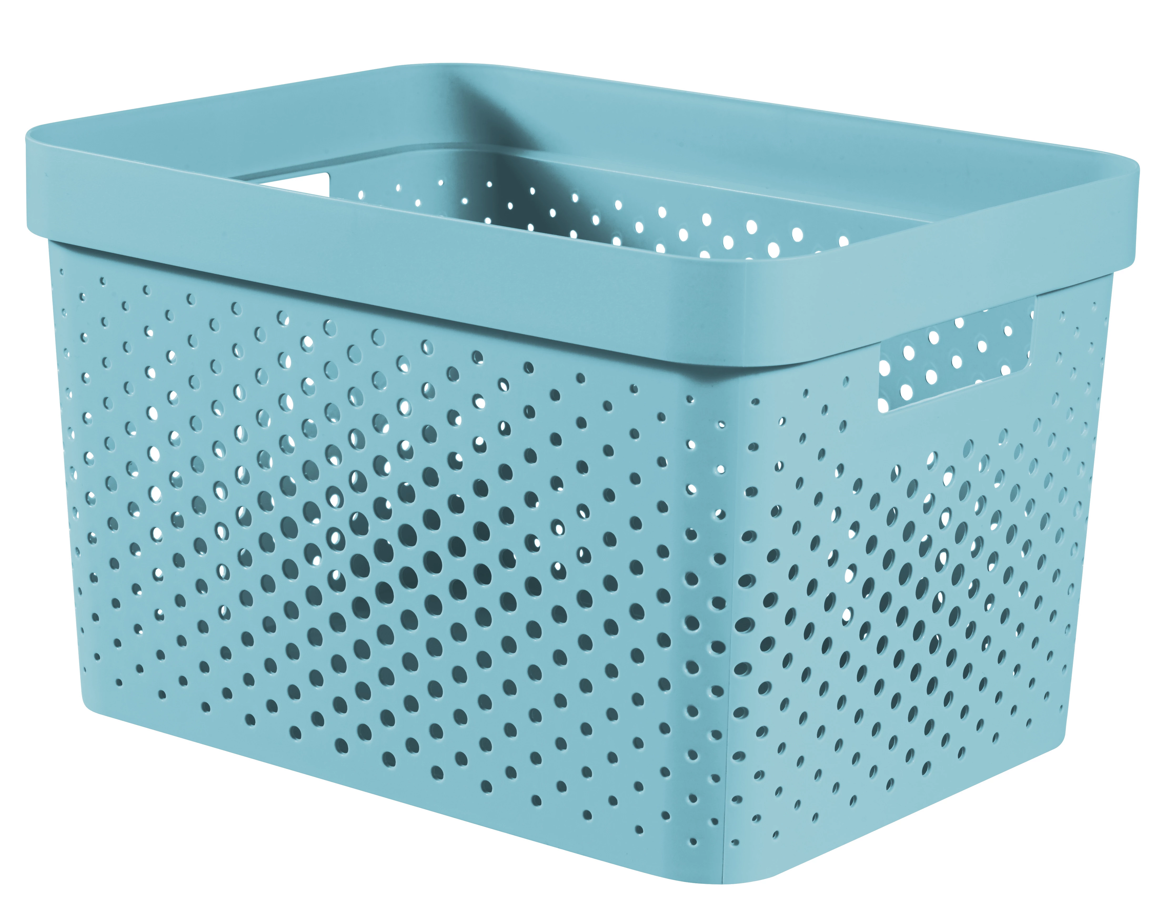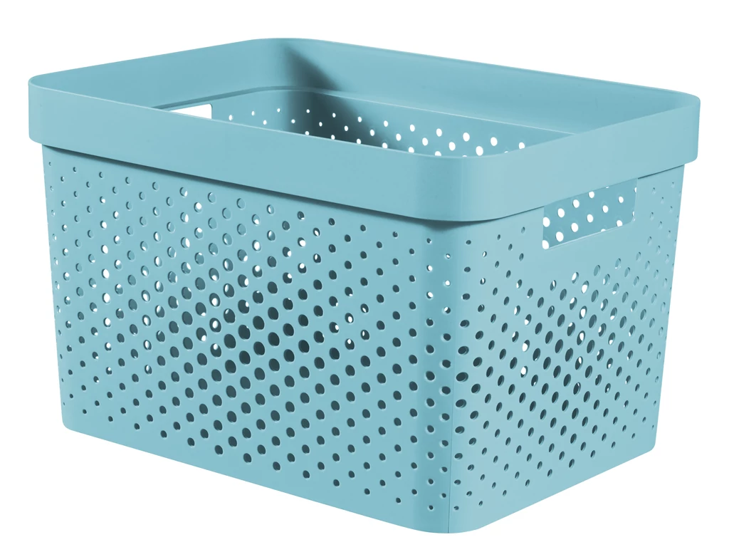 Az Infinity tárolódoboz egy moduláris és multifunkcionális tárolási megoldás az otthonodba. Kényelmes fogantyúinak köszönhetően könnyedén szállítható, így az ékszerek, konyhai és fürdőszobai kiegészítők, vagy a különböző papírok bármely szobában helyet kaphatnak. A legjobb minőségű műanyagból készül, így ellenálló és könnyen tisztítható. Az egyedi, lyukacsos mintázat skandináv stílust kölcsönöz neki, amely tökéletes kiegészítője bármely szobának! További előnye a terméknek, hogy 100%-ban újrahasznosított anyagból készül, így rendkívül környezettudatos.