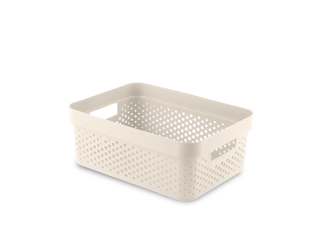 Az Infinity tárolódoboz egy moduláris és multifunkcionális tárolási megoldás az otthonodba. Kényelmes fogantyúinak köszönhetően könnyedén szállítható, így az ékszerek, konyhai és fürdőszobai kiegészítők, vagy a különböző papírok bármely szobában helyet kaphatnak. A legjobb minőségű műanyagból készül, így ellenálló és könnyen tisztítható. Az egyedi, lyukacsos mintázat skandináv stílust kölcsönöz neki, amely tökéletes kiegészítője bármely szobának! További előnye a terméknek, hogy 100%-ban újrahasznosított anyagból készül, így rendkívül környezettudatos.